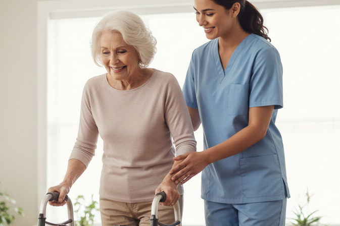 Assistance with movement and transfers to improve safety and reduce the risk of falls.